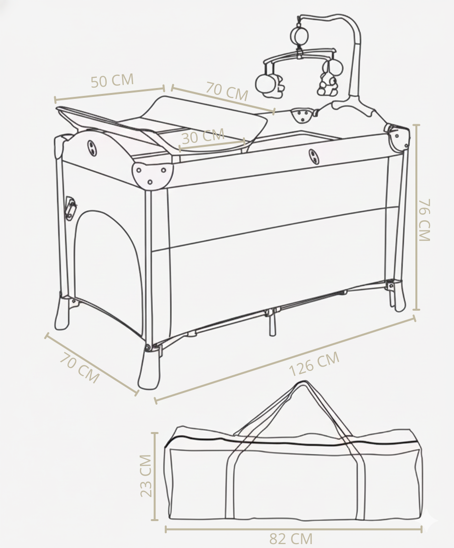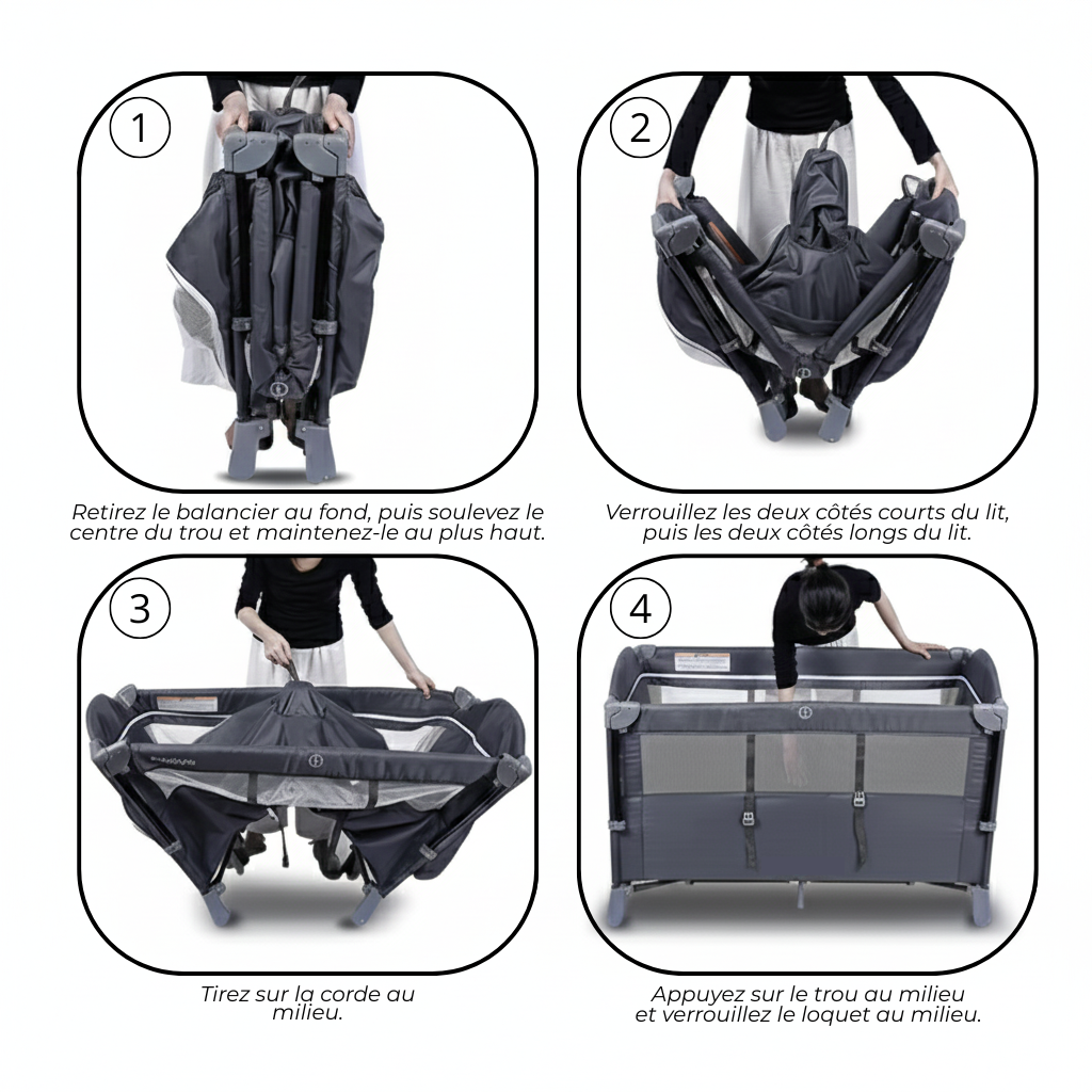 Lit de Voyage : Facile à plier et à transporter, il suit la famille partout.