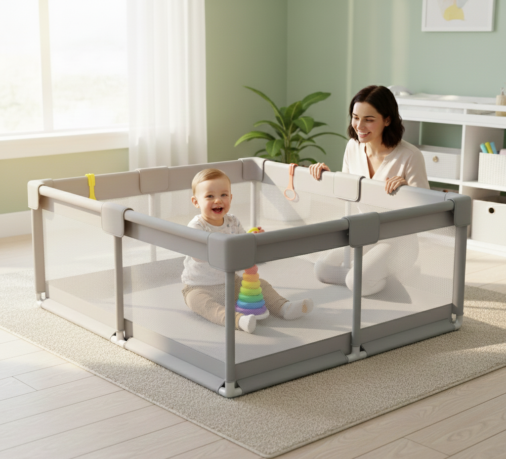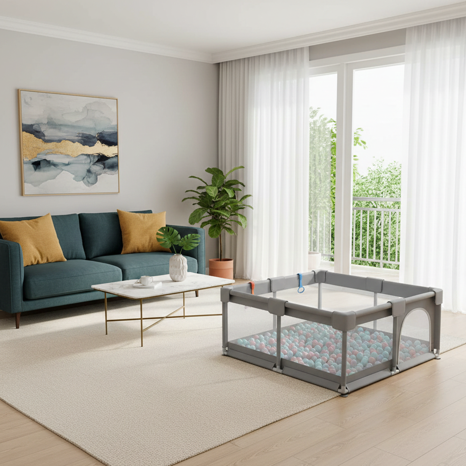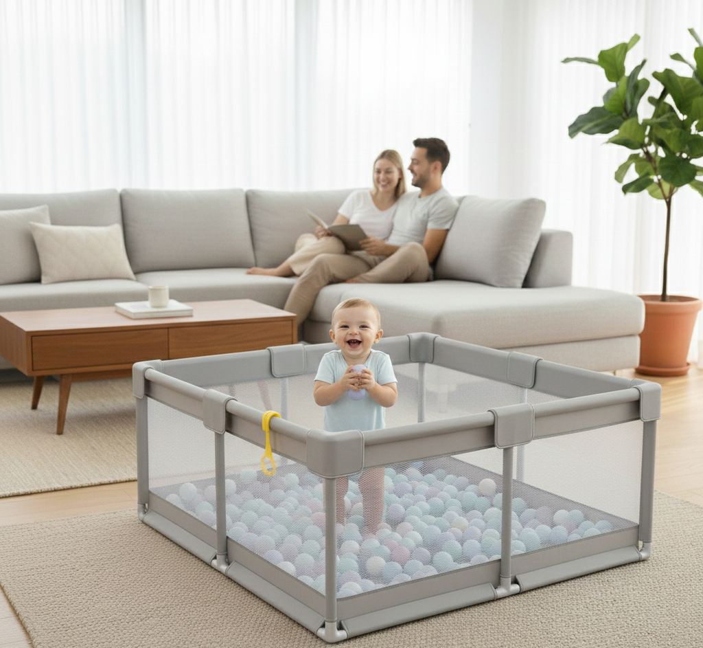Avec une surface de jeu XXL, ce parc offre un espace vaste pour que bébé puisse explorer librement, s’étaler avec ses jouets ou même inviter un parent à participer. Un terrain de jeu idéal pour favoriser la motricité libre et l'exploration.